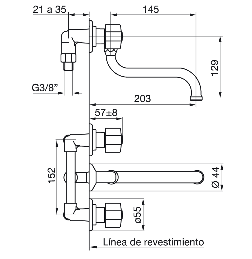 | Caudal | Caudal mínimo de salida, a presión estática requerida de 0.4 BAR y caudal mínimo de alimentación de 20 lts por minuto (en conexiones fría y caliente): 20 lts por minuto. |