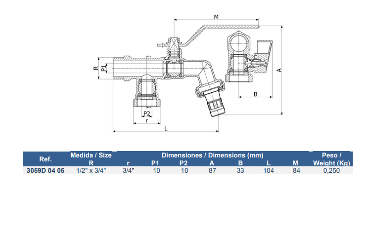 VÁLVULA ESFERA PARA MANGUERA 2 SALIDAS