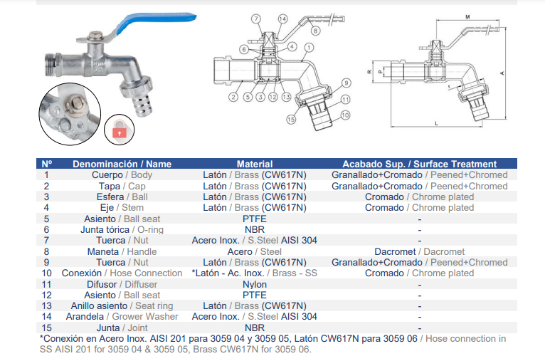 Temp. Máx. 100ºC. Palanca de acero con traba candado