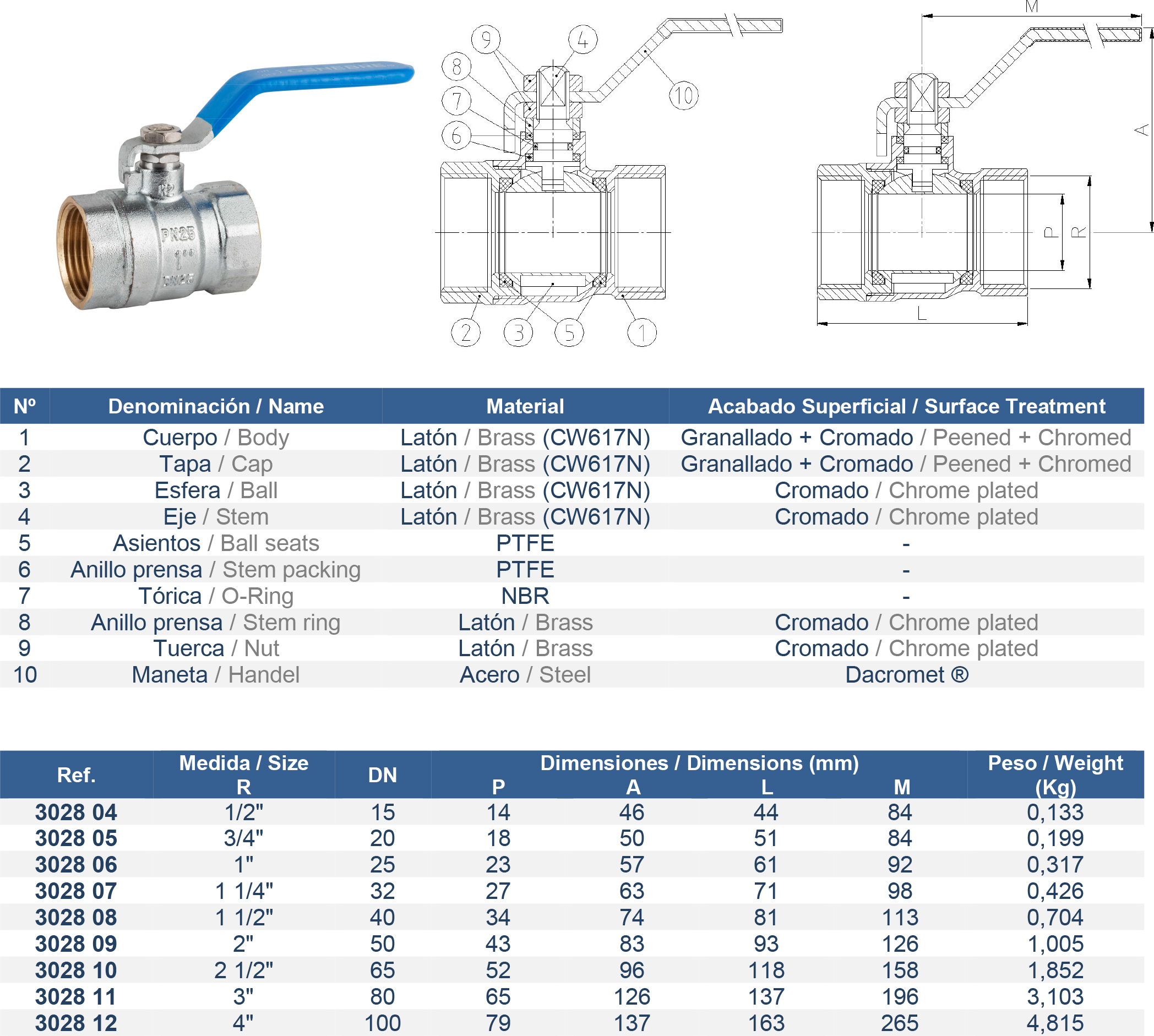 PN-25. Construcción en latón UNE-EN 12165 cromado