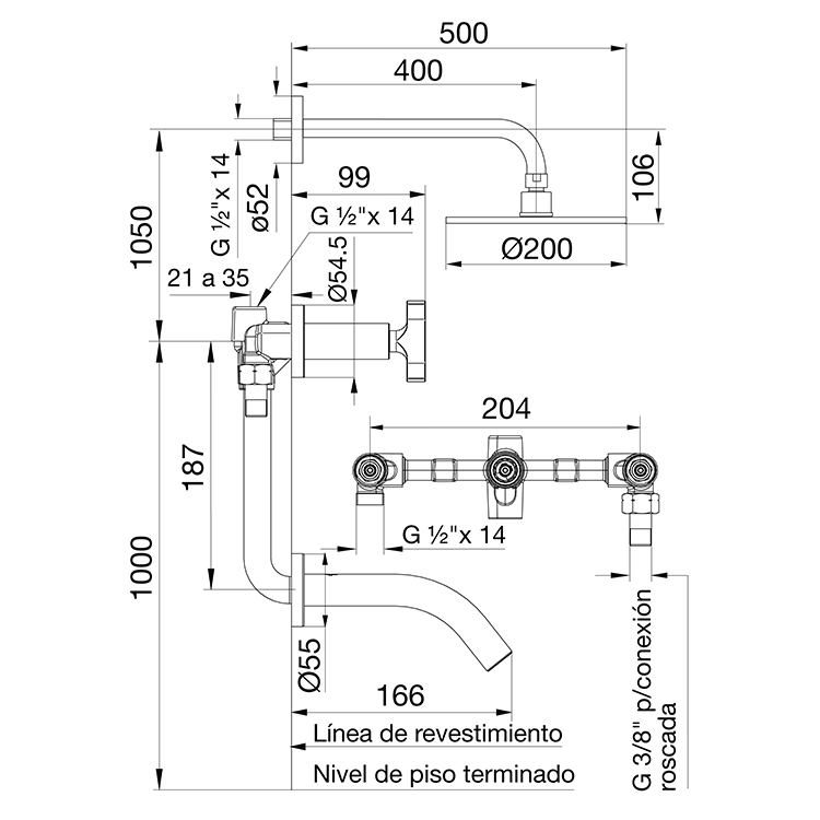minuto (en conexiones de agua fría y caliente):